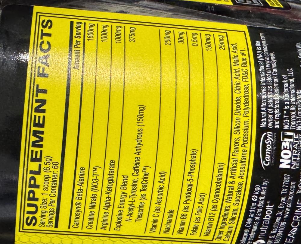 - نوع المنتج: مكمل غذائي قبل التمرين.