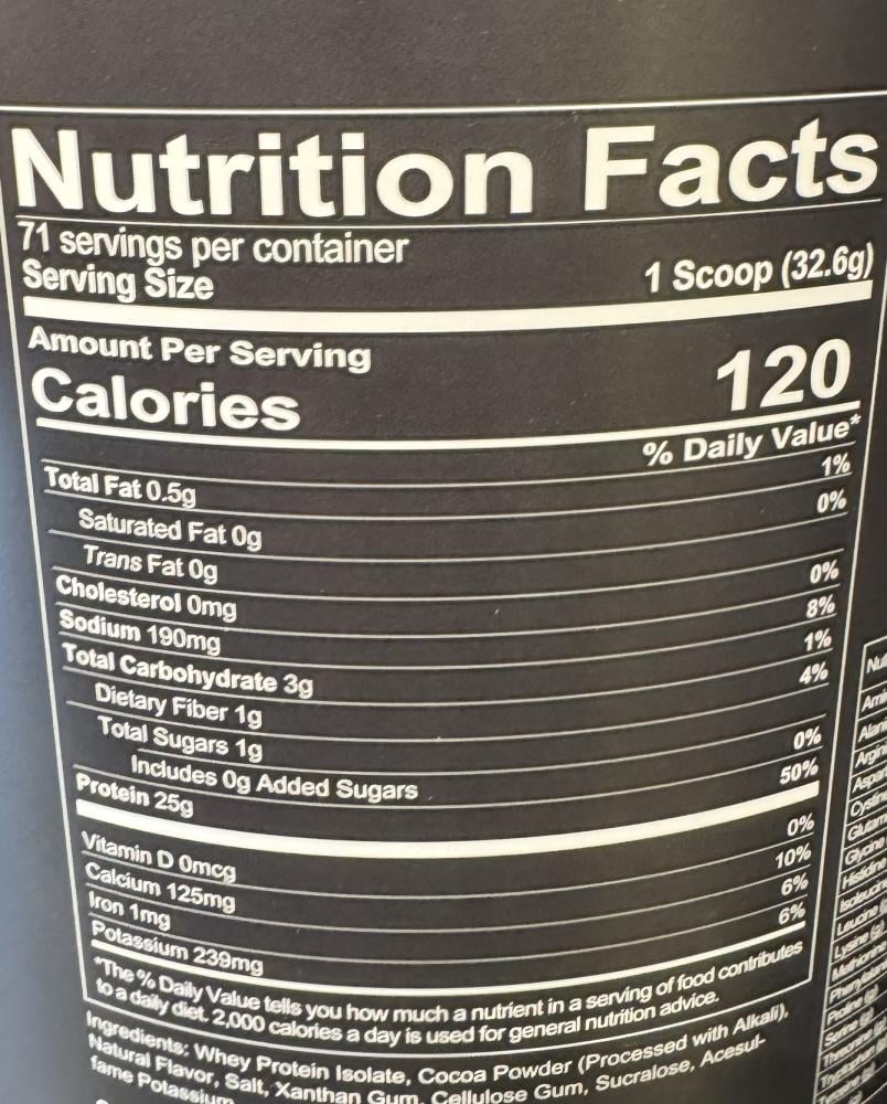 - البروتين: يحتوي على 25 غرام بروتين عالي الجودة لكل سيرفنق لدعم بناء العضلات.